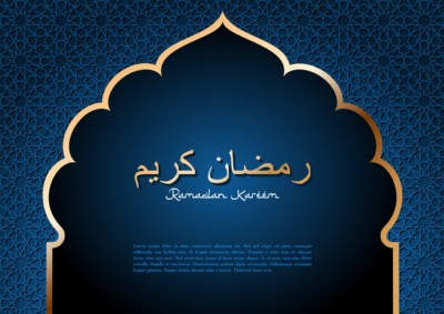 Luxury Ramadan Kareem vector greeting card template with golden arabic arch on royal blue background with girih traditional ornament. Arabic text translation Ramadan Kareem Royalty-free stock Ramadan concept, theme, category images, photos, graphics, vectors for you creative projects and designs. Stock photos