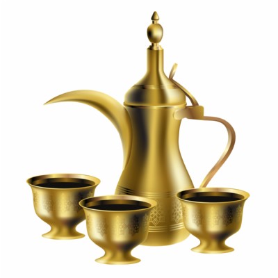 Golden realistic vector 3D arabic coffee pot dallah and three cups of bitter coffee Khaleeji isolated on white background Royalty-free stock Ramadan concept, theme, category images, photos, graphics, vectors for you creative projects and designs. Royalty-free stock graphics for your creative projects Photo blog