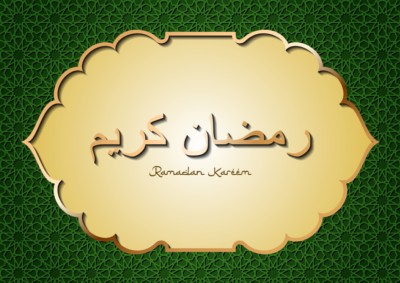 Greeting Ramadan Kareem card with golden arabic frame with beige background on green background with girih traditional ornament. Arabic text translation Ramadan Kareem Royalty-free stock concept, theme, category images, photos, graphics, vectors for you creative projects and designs. Stock vectors