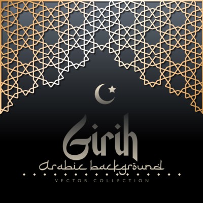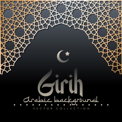 Vector arabian geometric motif. Islamic Eid al Adha, Eid al-Fitr, Ramadan background. Oriental arch with traditional authentic girih ornament. Eastern building decorative architectural element.