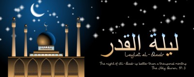 Laylat al-Qadr banner or website header vector template with illuminated mosque at night, moon crescent, stars, quran quote. Night of Decree or Power. Arabic text translation Laylat al-Qadr Royalty-free stock Ramadan concept, theme, category images, photos, graphics, vectors for you creative projects and designs. Royalty-free stock vectors for your creative projects Collection
